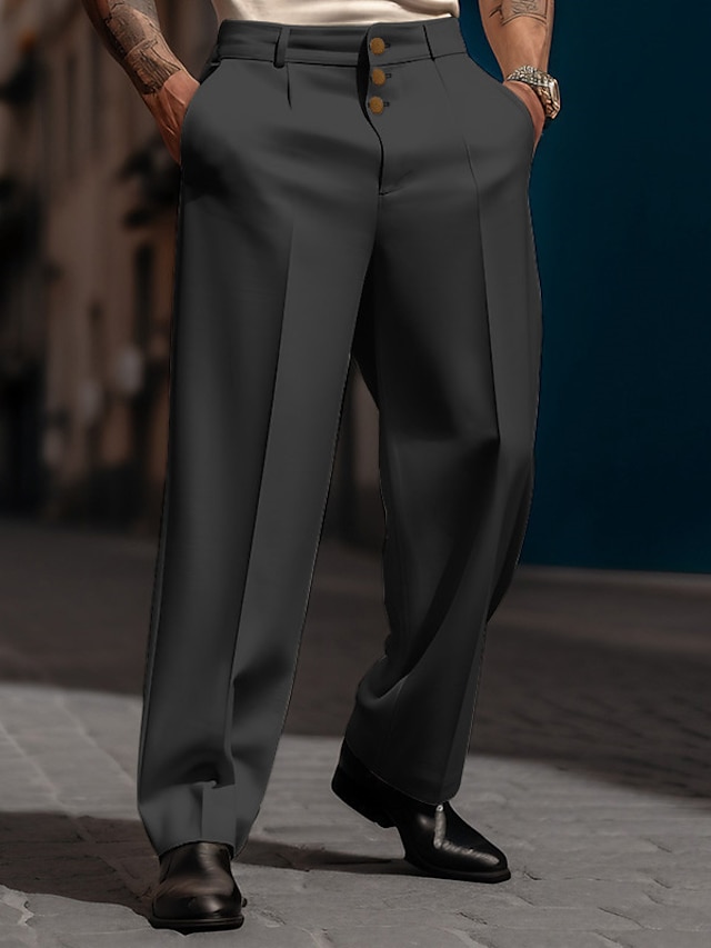 Gender:Men's,Pants Type:Suit Pants,Casual Pants,Trousers,Dress Pants,Style:Fashion,Basic,Occasion:Casual,Daily,Holiday,Fabric:Polyester,Design:Straight Leg,Front Pocket,Waistline:Mid Waist,Pattern:Plain,Season:Spring & Summer,Function:Comfort,Breathable,Fit Type:Regular Fit,Fly Type:Button,